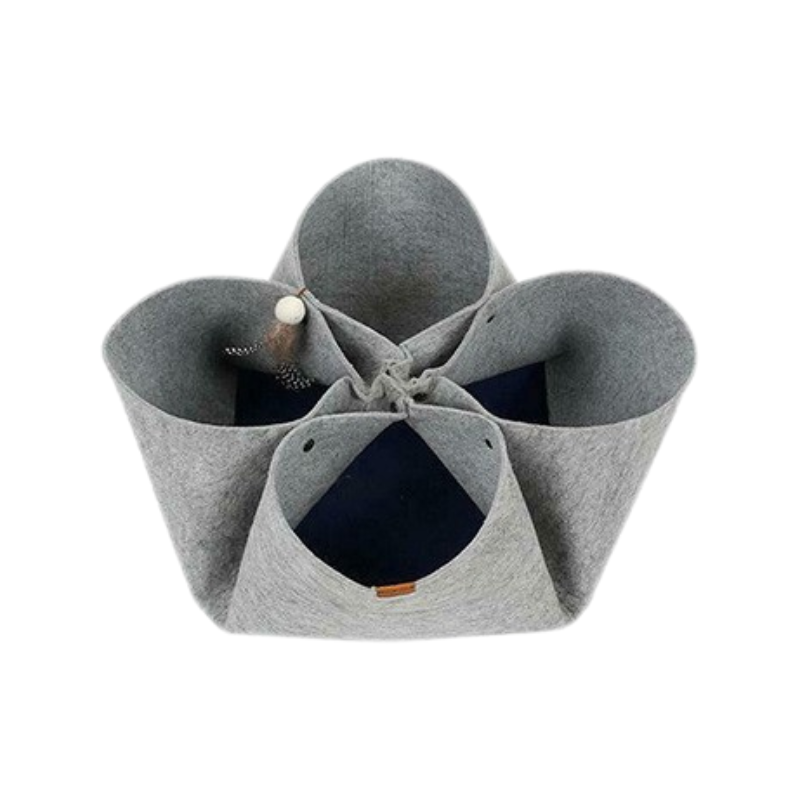Verwandle das alltägliche Dösen deines Haustiers in einen verspielten Rückzugsort mit der SchnurrHöhle – einer weichen Filzhöhle mit mehreren Taschen, die neugierige Katzen warm, bequem und bestens unterhalten hält, während sie schlafen, erkunden und sich einkuscheln – in ihrem ganz eigenen gemütlichen Königreich.