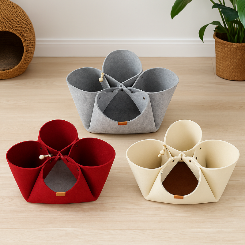 Das weiche Filzmaterial fühlt sich sanft am Fell an und bleibt das ganze Jahr über atmungsaktiv. Es ist stabil genug, um seine Form zu halten, aber gleichzeitig bequem genug, um darin einzukuscheln. Außerdem lässt es sich leicht von Raum zu Raum bewegen, damit deine Katze immer einen Platz zum Entspannen hat.