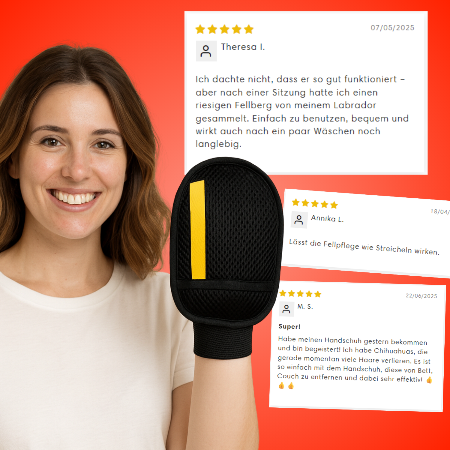 Genug von Haaren auf Sofa, Kleidung und Teppich? Mit FellWeg entfernst du Tierhaare im Handumdrehen – schnell, gründlich und ganz ohne Einwegprodukte. Mach dein Zuhause sauberer, deine Kleidung frischer und das Leben mit deinem Vierbeiner noch schöner – mit nur einem wiederverwendbaren Handschuh.