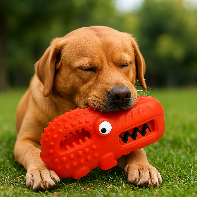 Bringe Spaß, Abwechslung und Zahnpflege in den Hundealltag – mit dem GummiGator! Dieses robuste Quietschspielzeug in Gator-Optik kombiniert Kauen, Spielen und langsames Füttern in einem – für langanhaltende Beschäftigung und ein fröhlich wedelndes Hundeleben.