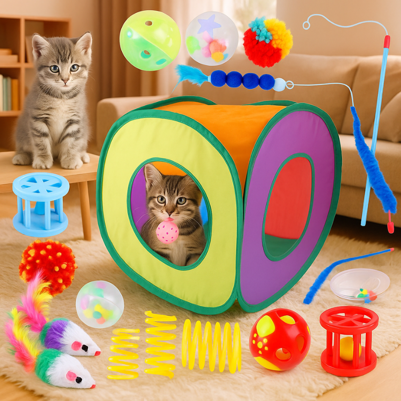Jedes Teil des Sets funktioniert einzeln oder zusammen – du kannst es täglich neu arrangieren und so den Spielspaß frisch halten. Heute ein gemütliches Versteckzelt, morgen ein spannender Jagdtunnel. Die Abwechslung hält deine Katze geistig fit und körperlich aktiv.