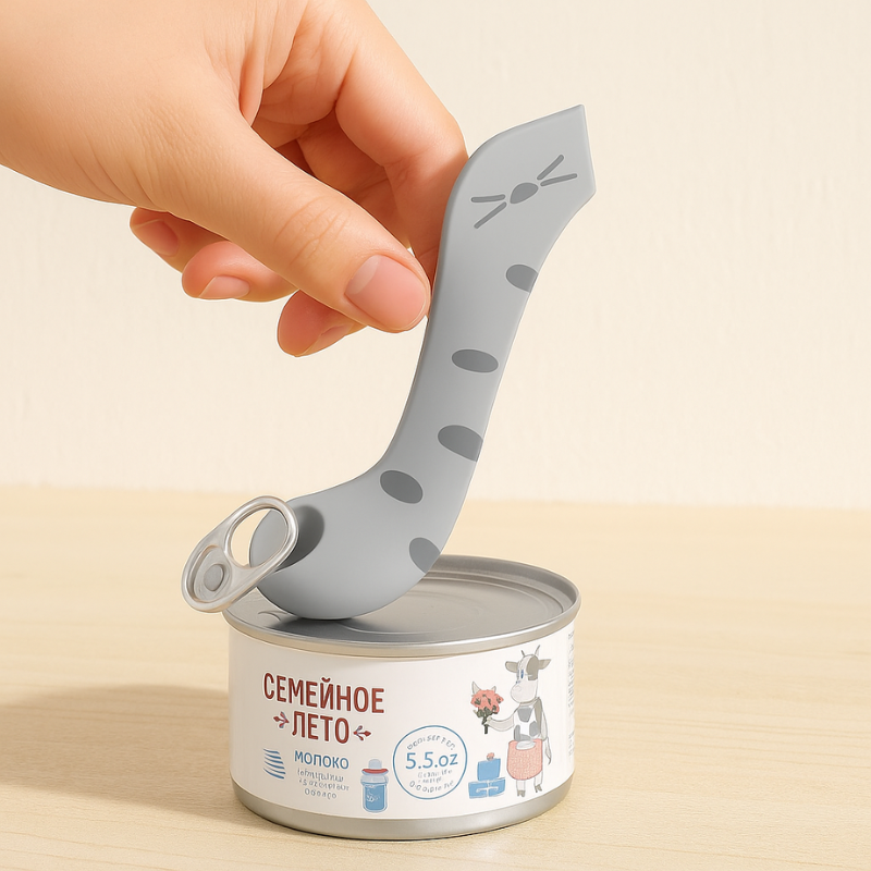 Kein Kampf mehr mit Laschen! Der Öffner in Schwanzform schiebt sich leicht unter den Deckel und hebt ihn spielend an – schonend für deine Hände und ohne Kratzer oder Kleckerei während der Fütterung.