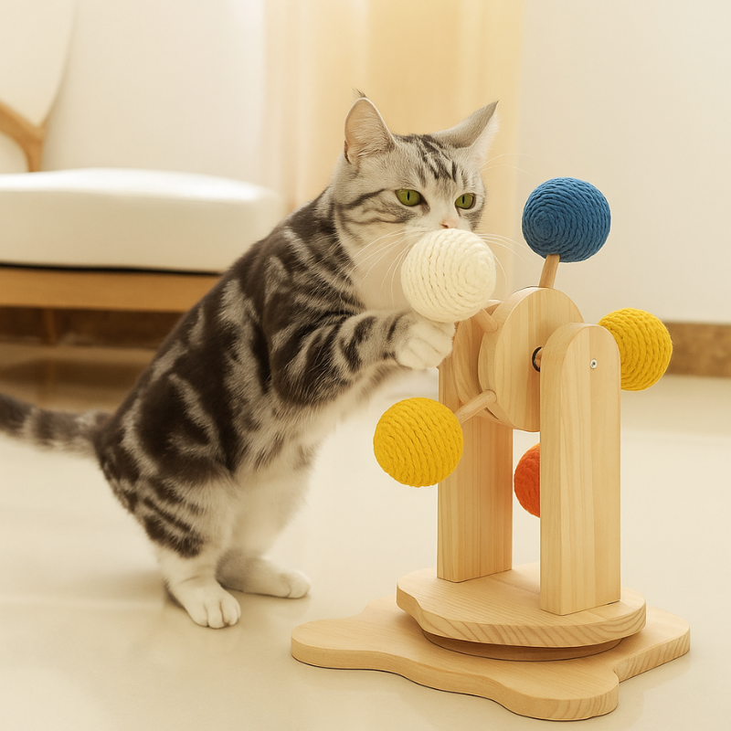 Das Geheimnis? Es fühlt sich nicht nach „Krallenpflege“ an. Die Sisalfläche ist ideal zum Schärfen der Krallen, und die Drehbewegung sorgt für Erfolgserlebnisse bei jedem Kratzer. Spielzeit und Selbstpflege – vereint in einem cleveren Design.