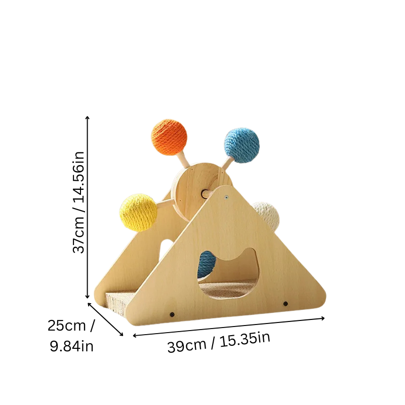 Mach Schluss mit Katzenlangeweile – mit dem PfotenRad! Das originelle Riesenrad-Spielzeug hält Krallen beschäftigt, weckt den Spieltrieb und schützt gleichzeitig deine Möbel. Ganz nebenbei bringt es eine verspielte Note in dein Zuhause.
