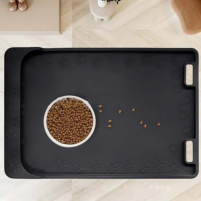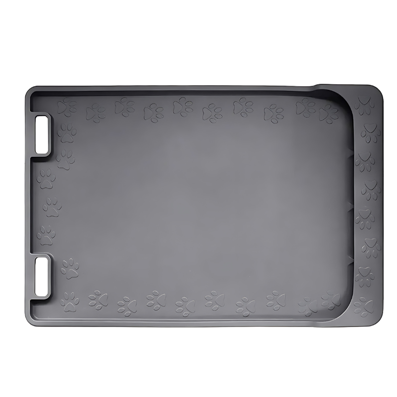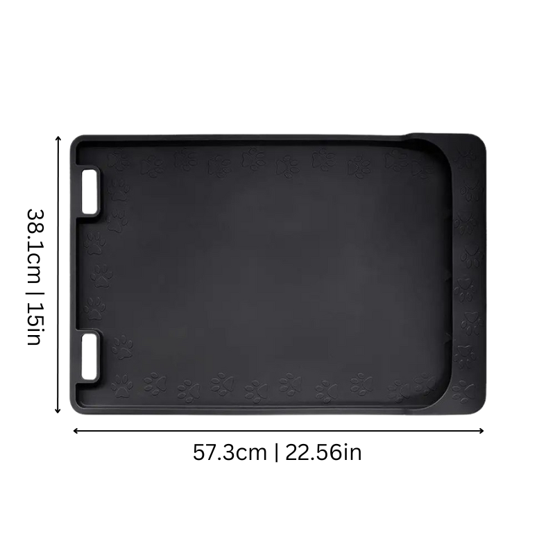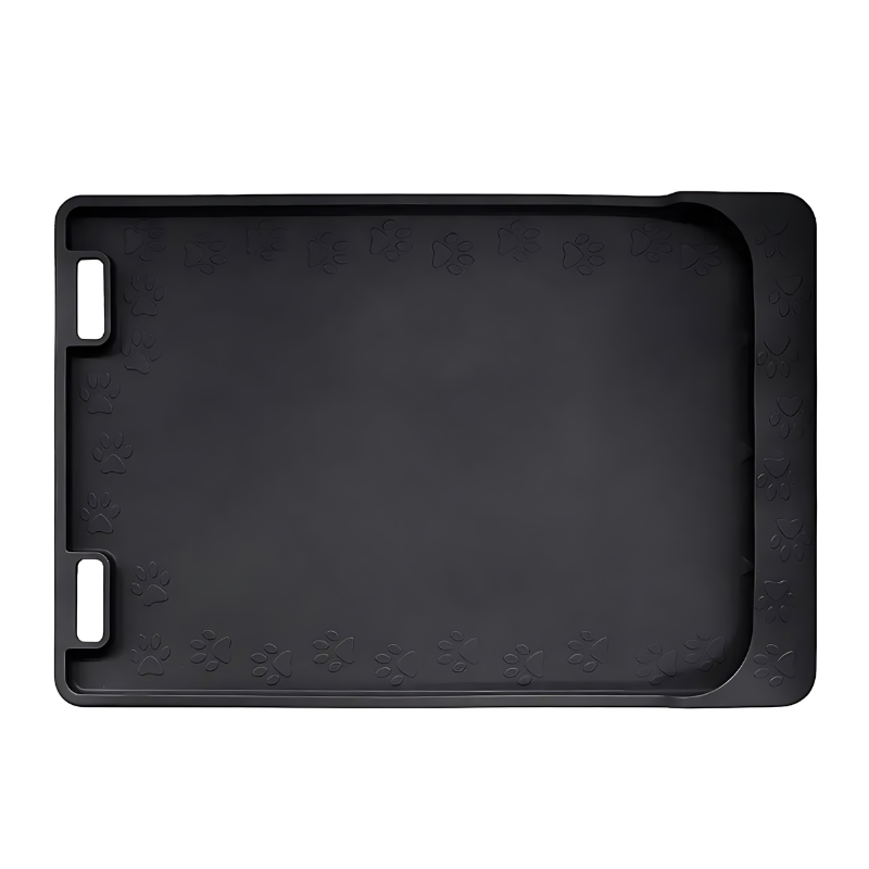Schluss mit rutschigen Pfützen! Die dicken, erhöhten Ränder des FutterSchutz verhindern, dass Futter und Wasser auf den Boden gelangen, und halten deinen Futterbereich sauber und trocken. Keine verstreuten Futtermittel mehr – nur ein aufgeräumter, übersichtlicher Bereich für die Mahlzeiten deines Tieres. Die Matte ist robust genug, um den energischen Pfoten und Bissen standzuhalten, und bleibt dabei lange in Topform.
