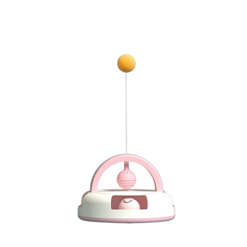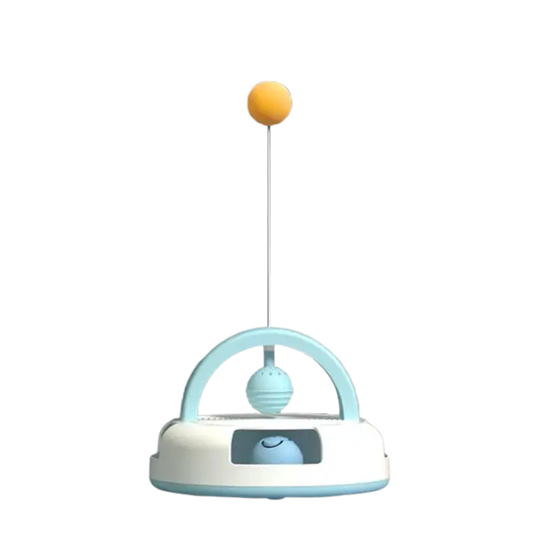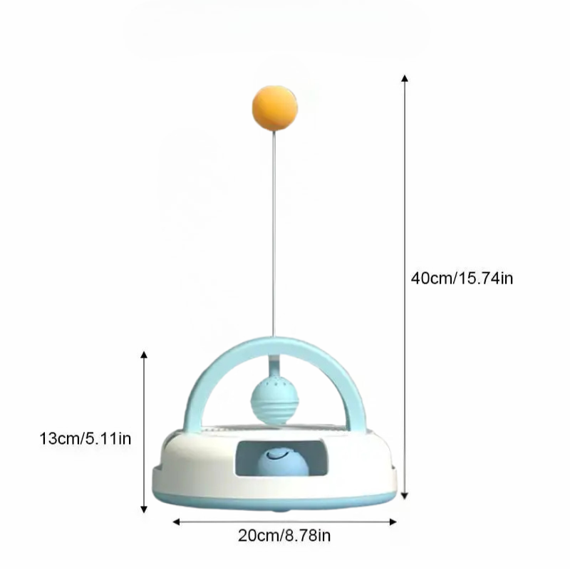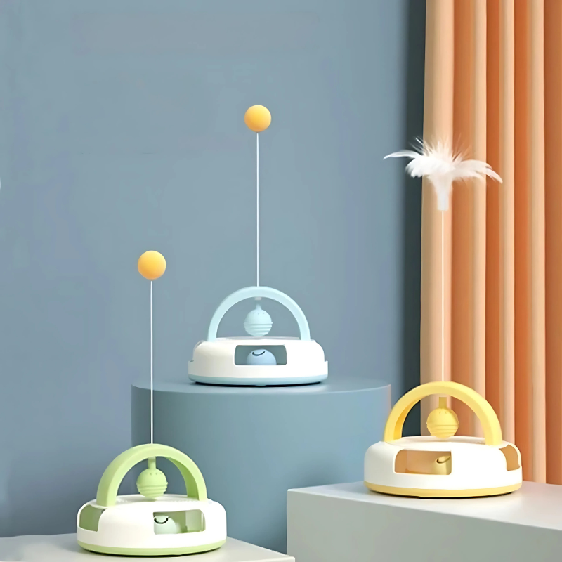 Im Zentrum steht ein Schwerkraft-gesteuertes Drehtablett, das schon bei leichtem Antippen in Bewegung gerät. Im Inneren sorgt eine eingebaute Katzenminze-Kugel für Aufmerksamkeit und Begeisterung. Jede Berührung löst unvorhersehbare Bewegungen aus – das weckt Jagdinstinkte und hält lange bei Laune.