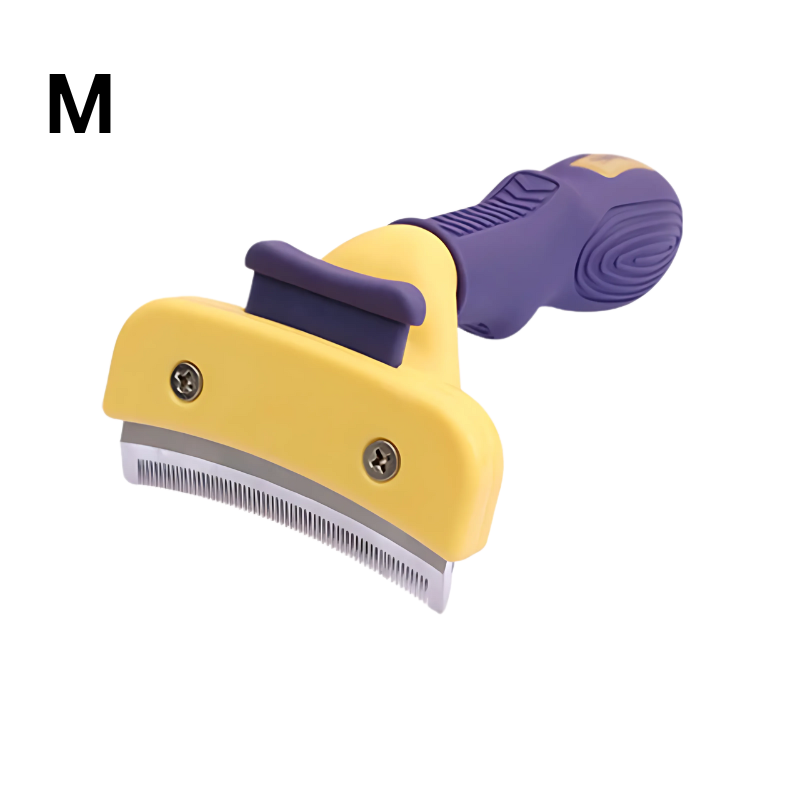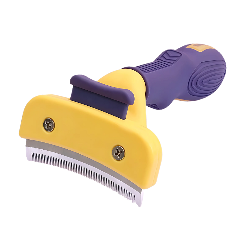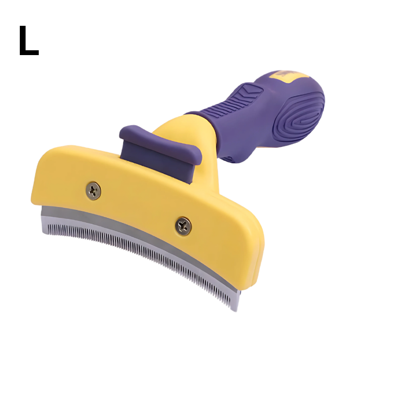Pflege war noch nie so einfach! Der V-förmige Kamm löst Knoten mühelos, während die gebogene Klinge sanft über den Körper deines Tieres gleitet. Robuste Metallzähne ermöglichen eine gründliche, aber schonende Bürstung. Mit dem praktischen Ein-Klick-Knopf lässt sich lose Unterwolle ganz leicht entfernen – der ergonomische Griff liegt dabei angenehm in der Hand. So wird Bürsten für dich und dein Haustier zur stressfreien Routine.