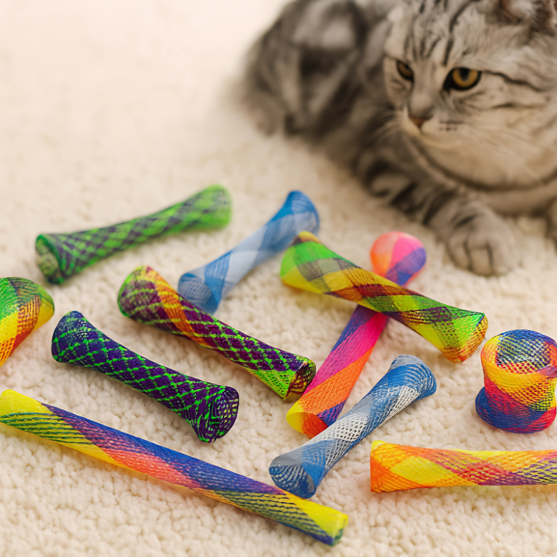 Mach aus jedem Sprung, jeder Jagd und jedem Hüpfer einen echten Glücksmoment – mit den SchnappSchnüren, den bunten Mesh-Federspielzeugen, die neugierige Katzen in Bewegung bringen, beim Zahnen helfen und dein Zuhause mit fröhlichem Geflitze und schnurrenden Abenteuern füllen.