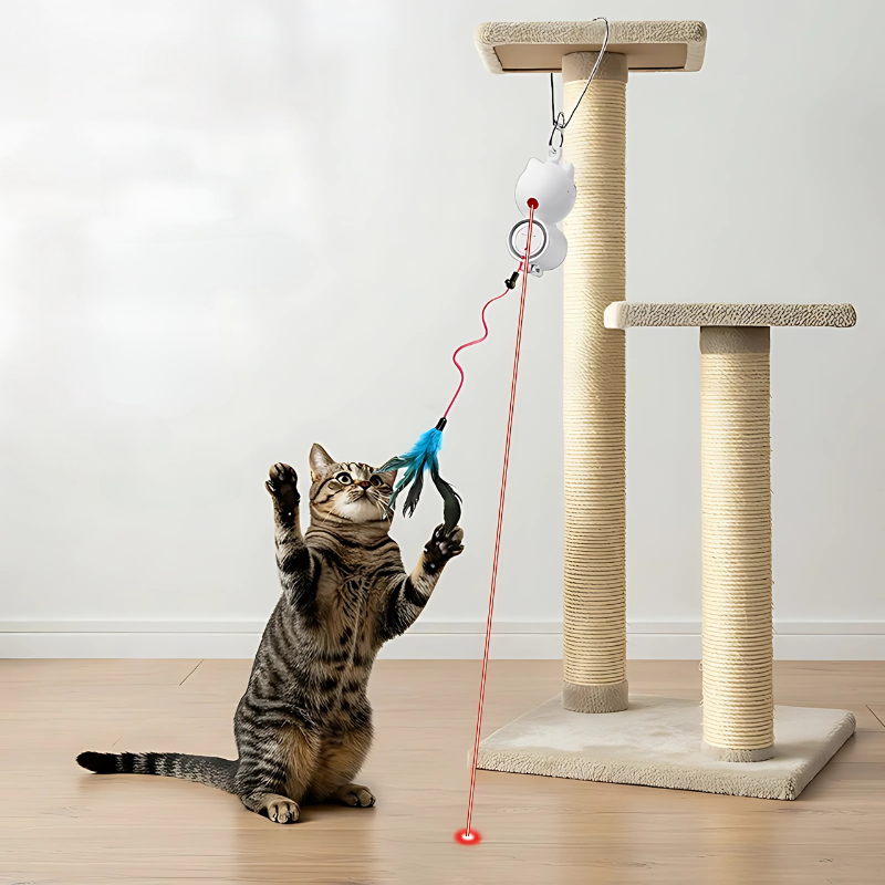 Katzen lieben Abwechslung – und genau das bietet JagdSchnur mit drei interaktiven Spielmodi! Ob sanftes Schwingen von Seite zu Seite, verlockende Bogenbewegungen oder hüpfende Impulse – dieses Spielzeug hält deine Katze immer auf Trab. Die Bewegungen ahmen echtes Beuteverhalten nach und regen die natürlichen Jagdinstinkte an. Langeweile? Gehört der Vergangenheit an!