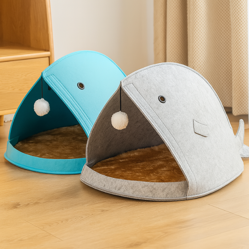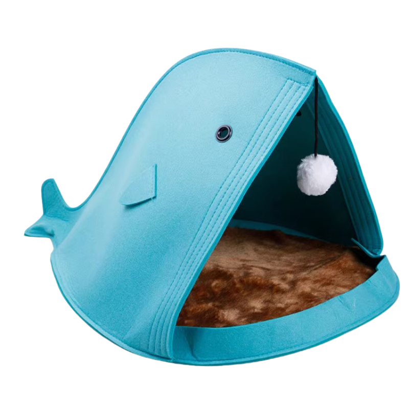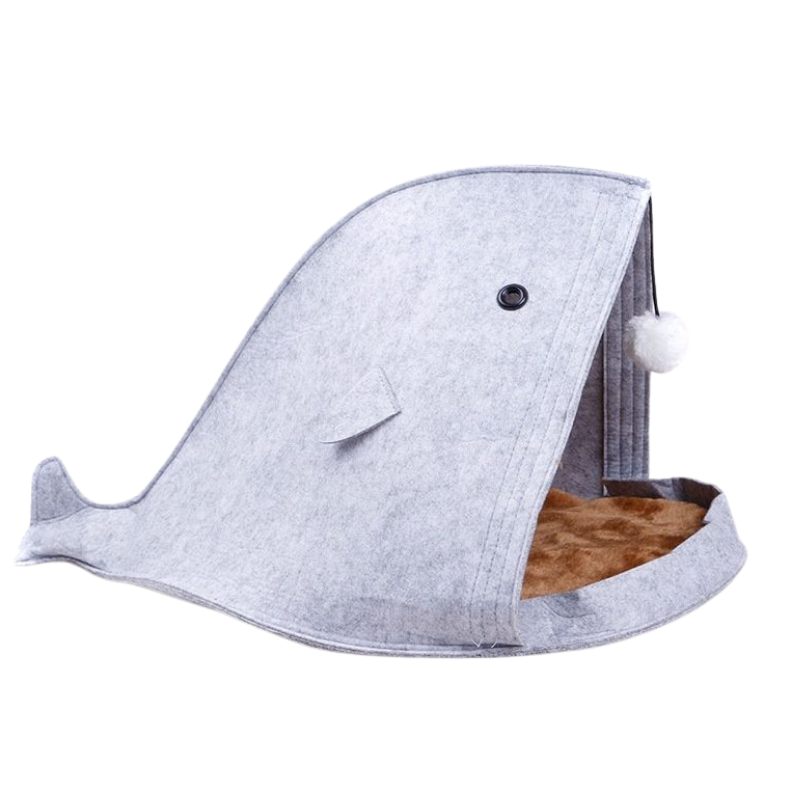 Mit ihrer walähnlichen Form und den neutralen Farben ist die WalHöhle ein Hingucker in jeder Wohnung. Funktional, verspielt und dekorativ zugleich. Wähle zwischen Blau und Grau – passend zum Charakter deiner Katze und deinem Einrichtungsstil.